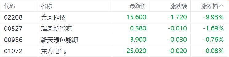 风电股全天萎靡,龙头金风科技大跌近10%,瑞丰新能源跌1.69%,新天绿色能源、东方电气跟跌。